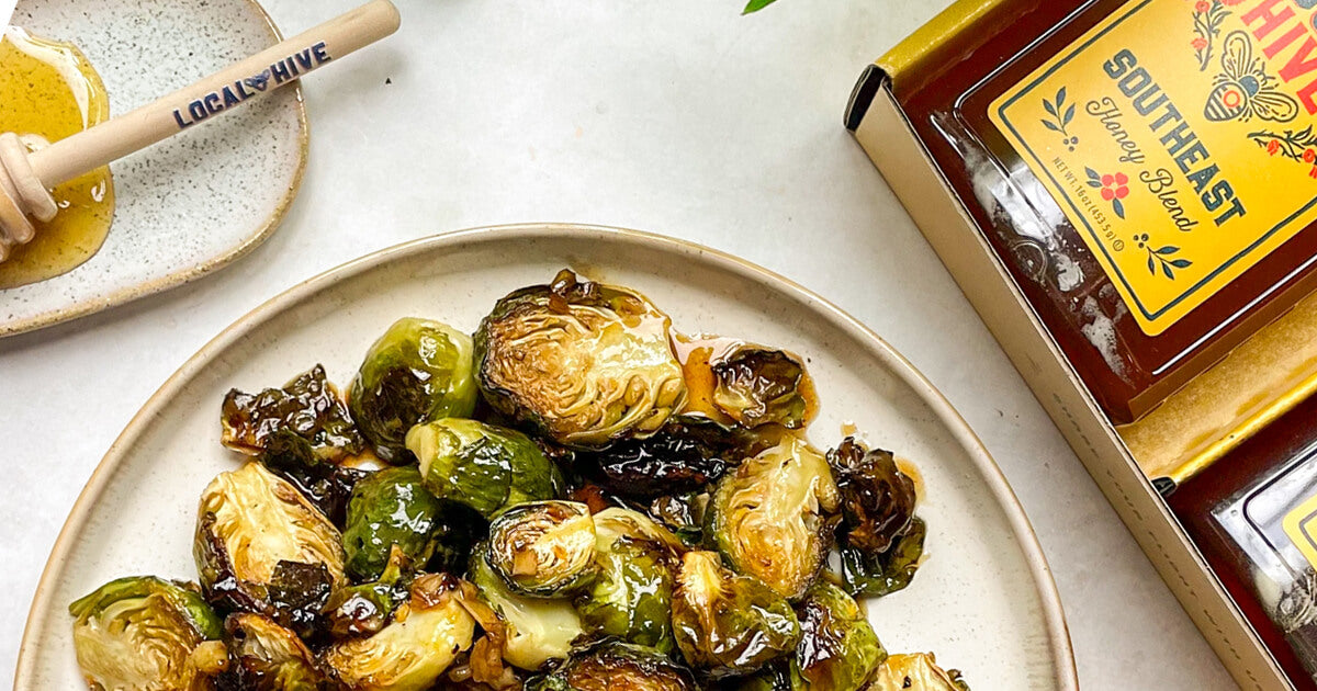 3 Tablespoons @localhivehoney1lb brussels sprouts, washed and cut in half