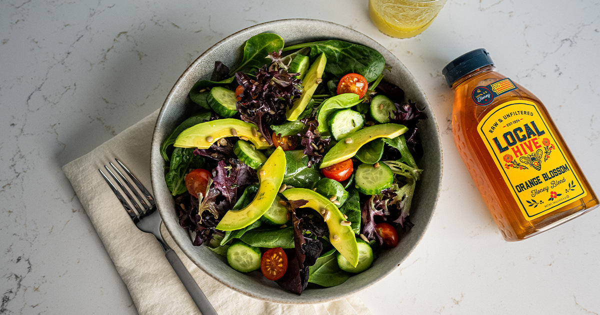 This sweet, tangy salad dressing is even better because it features Local Hive Orange Blossom raw & unfiltered honey.